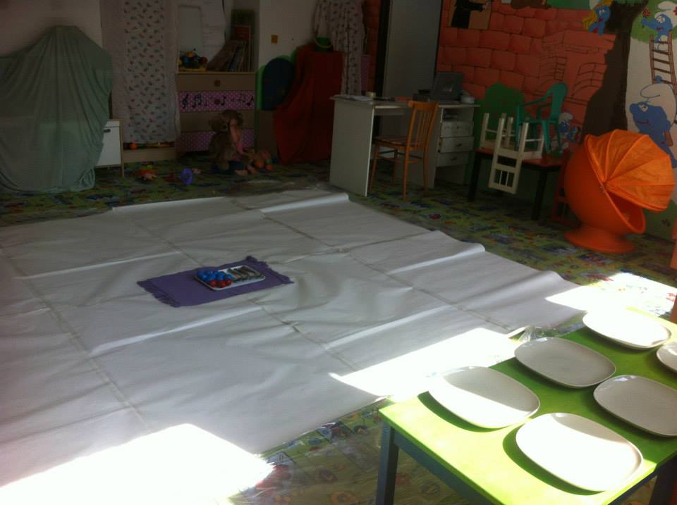 A keď už sa farby z tanierikov míňali a voda začala stekať zo stolčekov na koberce, rozhodli sme sa všetky farebné deti poumývať do pôvodného prevedenia a vodu povylievať do umývadla. A tak sa herňa opäť zaplnila hračkami, deti sa vybehali a mamičky si na chvíľku vydýchli a porozprávali sa.